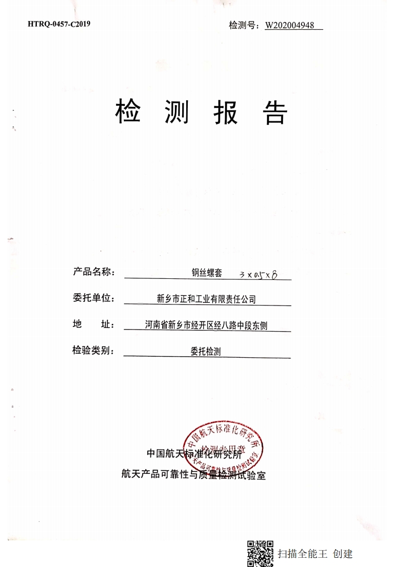 公司生產(chǎn)管理人員均嚴(yán)格培訓(xùn)后上崗。多年來(lái),技術(shù)人員曾多次開(kāi)發(fā)和研制新產(chǎn)品,替代進(jìn)口;尤其在螺紋連接新工藝上,為制造業(yè)做出了應(yīng)有的貢獻(xiàn)。并于2000年在鋼絲螺套的基礎(chǔ)上成功研制出具有鎖緊功能的自鎖螺母,該產(chǎn)品可以防止螺母在各類(lèi)機(jī)械設(shè)備振動(dòng)時(shí)的松動(dòng),于2001年自行開(kāi)發(fā)研制出55o圓柱管螺紋鋼絲螺套。公司提供標(biāo)準(zhǔn):軍標(biāo)、航標(biāo)、機(jī)械部標(biāo)、美標(biāo)、德標(biāo)、企標(biāo)等 。產(chǎn)品范圍更為廣泛,包括:米制粗、細(xì)牙螺紋,英制粗、細(xì)牙螺紋,管螺紋及各種非標(biāo)螺紋的設(shè)計(jì)和生產(chǎn)加工,我公司產(chǎn)品經(jīng)中國(guó)航空標(biāo)準(zhǔn)件檢測(cè)中心(303所)、中國(guó)航天標(biāo)準(zhǔn)件檢測(cè)中心(708所)檢測(cè),各項(xiàng)指標(biāo)均符合標(biāo)準(zhǔn)要求。